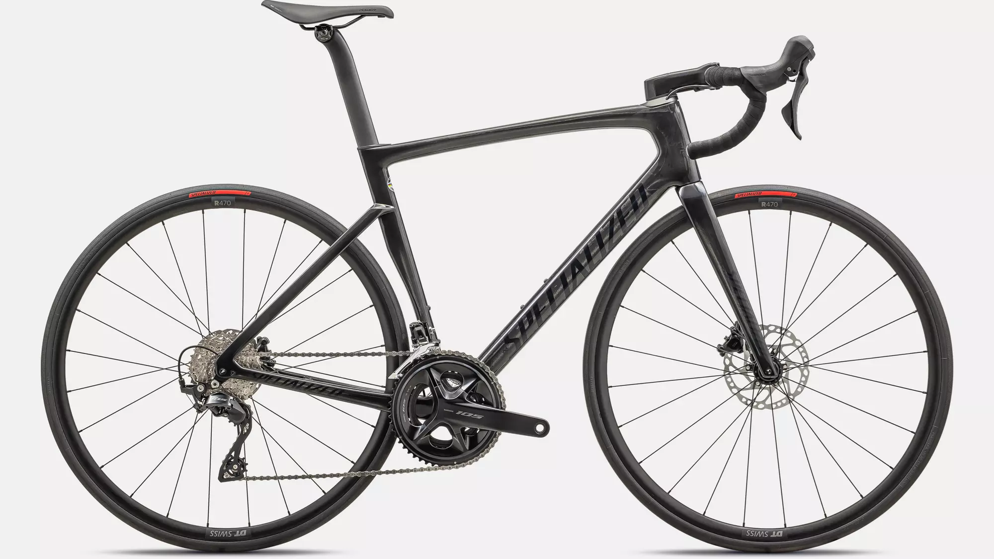 Com o grupo Shimano 105 de 12 velocidades mecânico, junto com pneus de rolagem rápida Turbo Pro 700x26mm, essa Tarmac leva a performance de encontro ao custo-benefício.